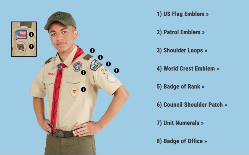 Two great references: 1) “Adventure Ahead!” section of the Boy Scout Handbook 2) Online Scout Shop: Scroll down the page to: Scouts BSA Insignia Guide.